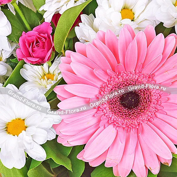 Вся прелесть букета заключена в изящных герберах, пышных розах и нежных, девичьих хризантемах. Букет станет изысканным знаком внимания молодой девушке. Он поможет выразить светлые, зарождающиеся чувства. Белый цвет говорит: “ты мне нравишься”, а розовый добавляет: “очень”. Заказав у нас эту романтическую композицию, вы сможете в прямом смысле изменить судьбу, ведь цветы, как известно, топят даже самые холодные и неприступные сердца.
